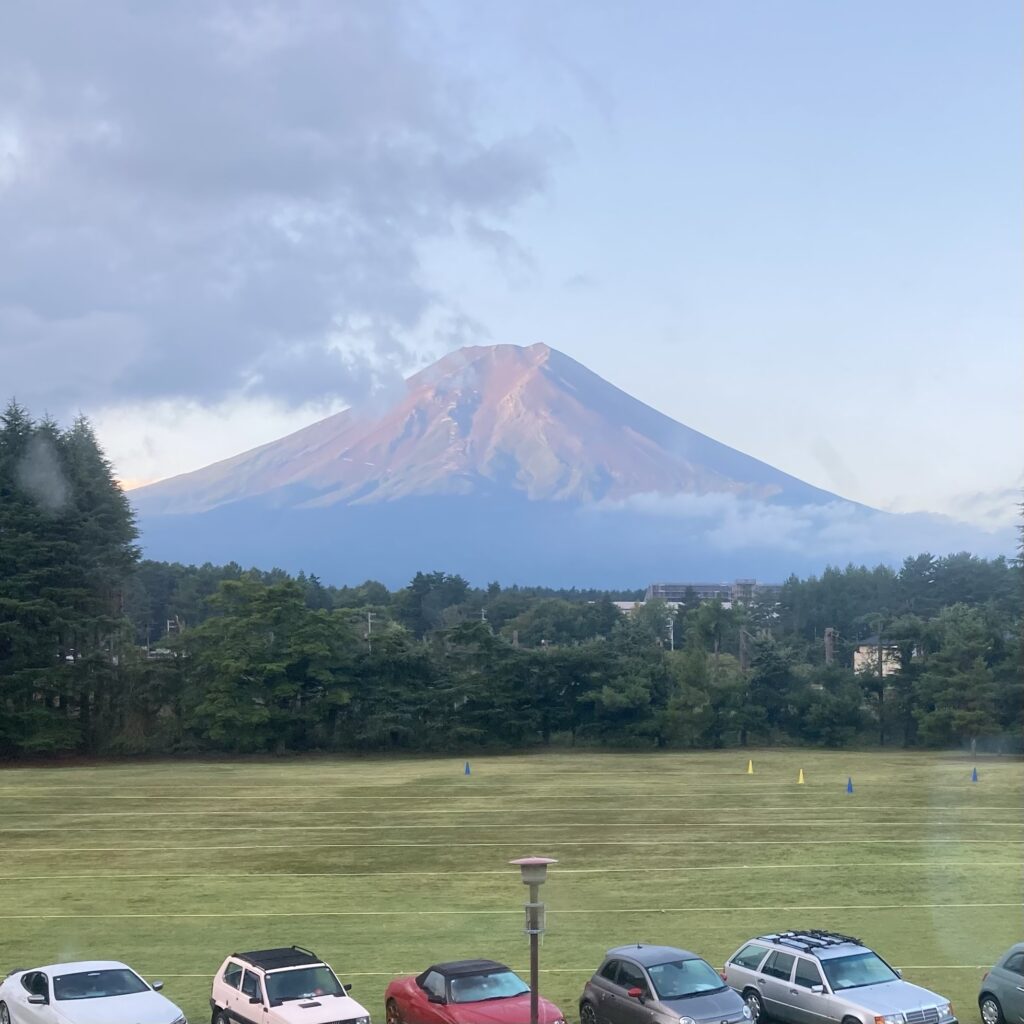早朝は会場の背後にそびえる富士山を拝むことができました。続々と車が到着し、会が始まる頃には富士山の姿が見えなくなっていました。それでもお天気に恵まれ楽しく忙しい一日となりました。